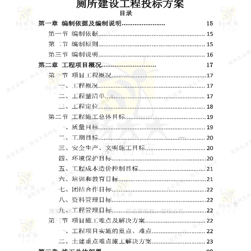 厕所建设工程投标方案 厕所改造工程施工组设计word方案可编辑织 - 杨大大素材店