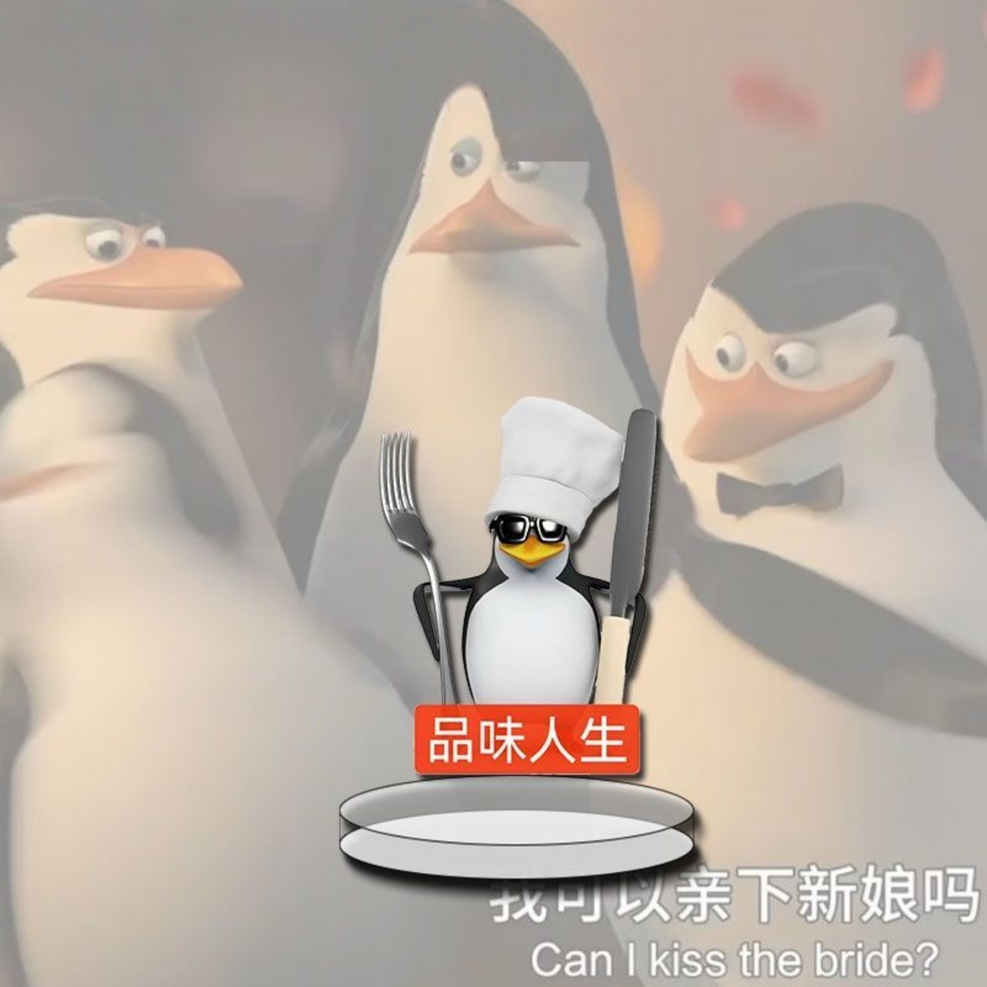 高雅人士企鹅表情包立牌威廉泰尔搞怪马达加斯加书桌摆件创意礼品