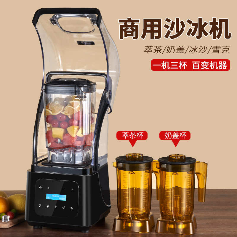 商用全自动沙冰机奶茶店隔音带罩奶昔碎冰机大马力萃茶沙冰奶盖机 - 谷湖商贸