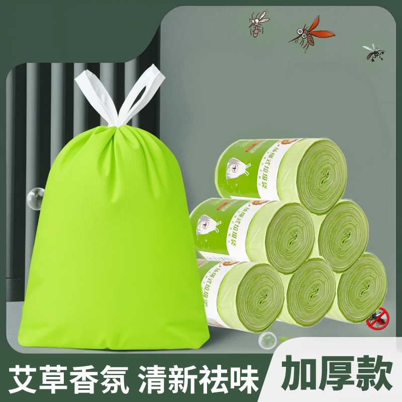 艾草驱蚊垃圾袋抽绳家用厨房卫生间手提式加厚除臭防蚊驱虫塑料袋 - 蘑菇小队日用百货创意小商品