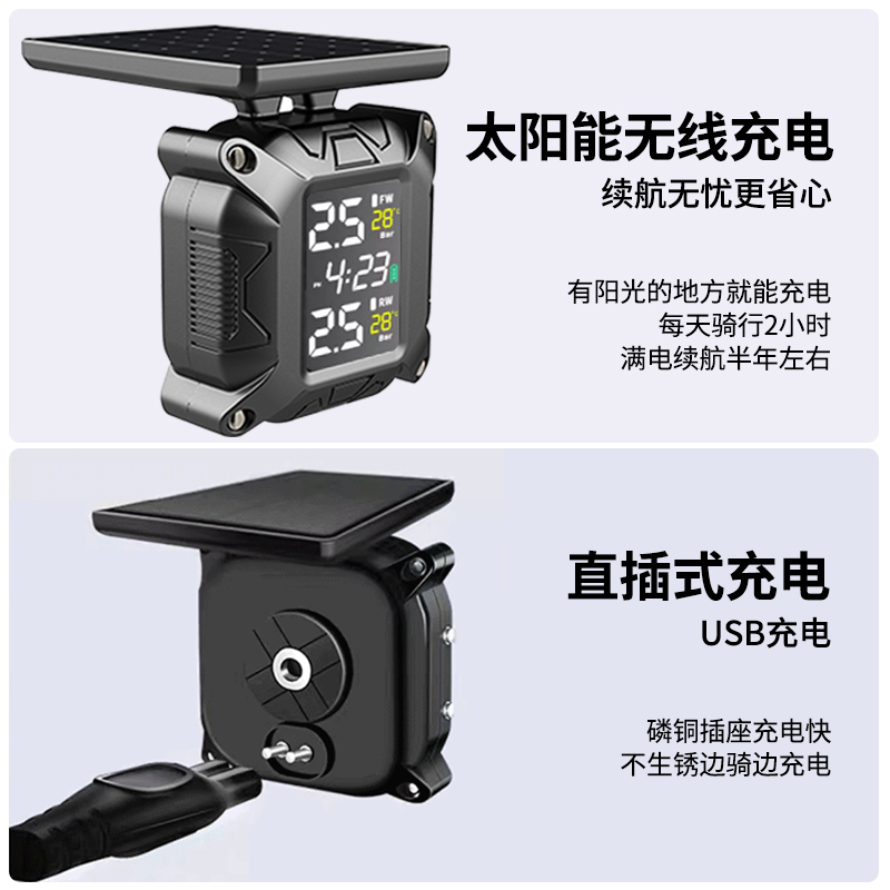 IZTOSS摩托车太阳能胎压监测器监控机车胎温检测仪传感器支架防水 - iztoss旗舰店