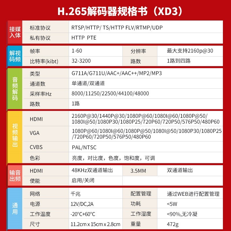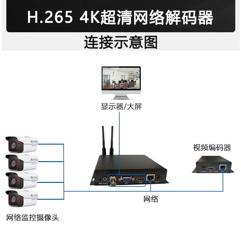 H265 WIFI 4路网络音视频解码器hdmi vga cvbs解4K监控轮巡 onvif - 佰渡电商
