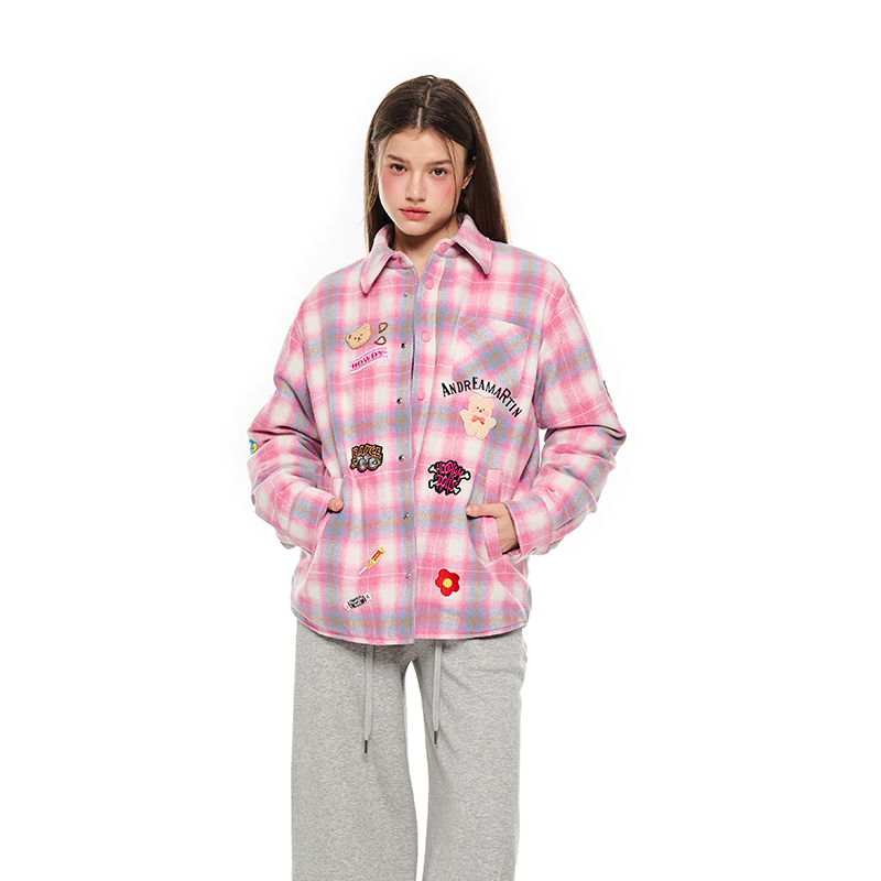 【田嘉瑞&王鹤润同款】ANDREA MARTIN冬新款羊毛格子徽章羽绒服 - ANDREAMARTIN旗舰店