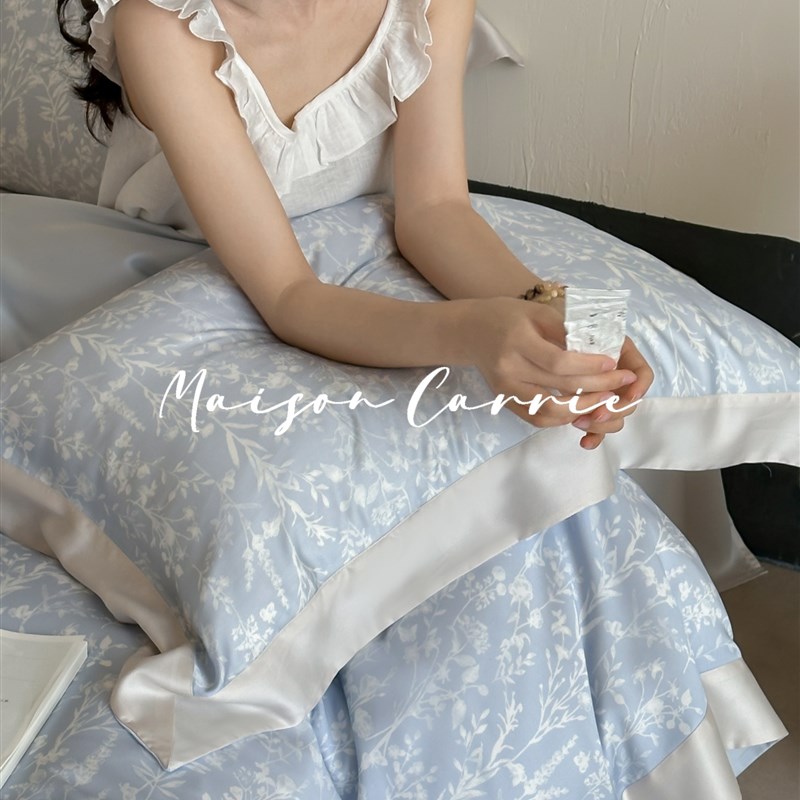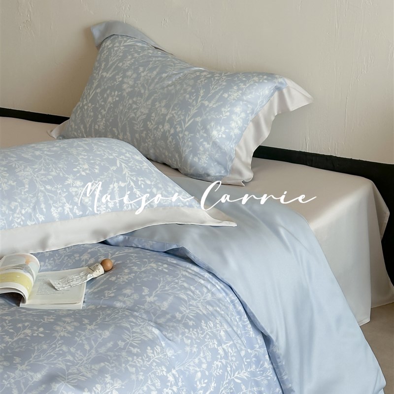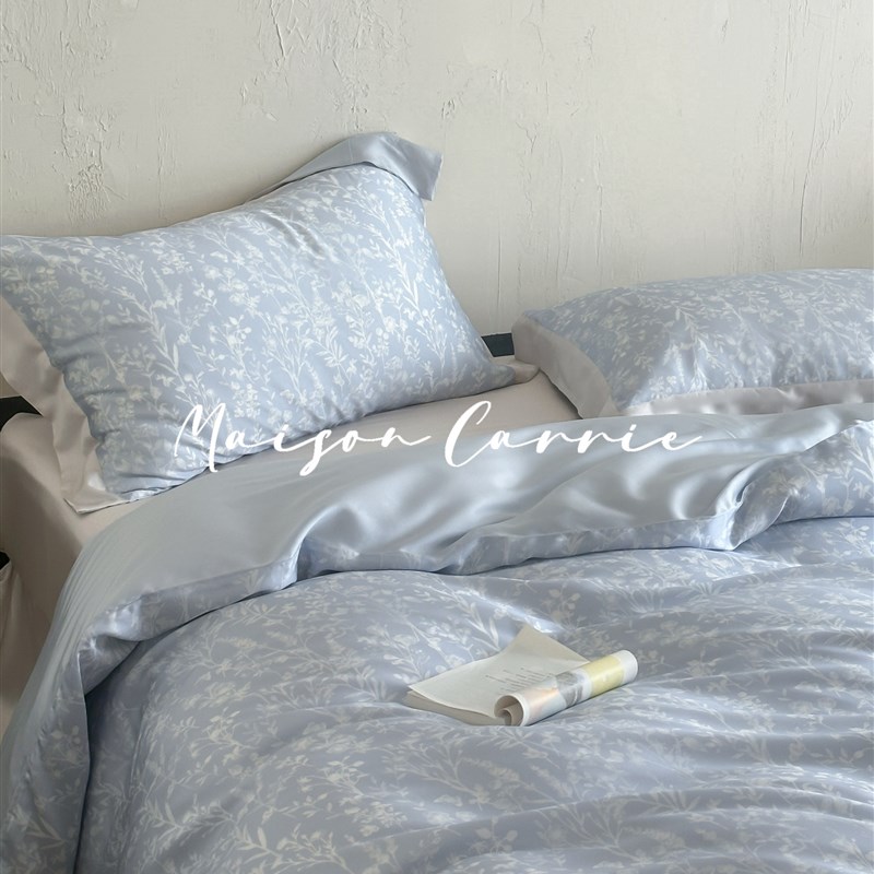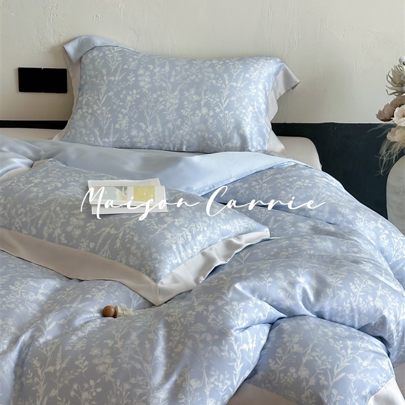 嘉里home 珊瑚雪影高端兰精天C丝床上四件套蓝色印花60支被套床 - tb1611138151