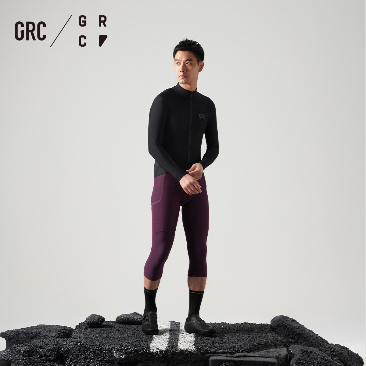 GRC骑行裤秋冬新款男TECH七分裤抓绒保暖反光自行车公路车背带裤 - GRC旗舰店