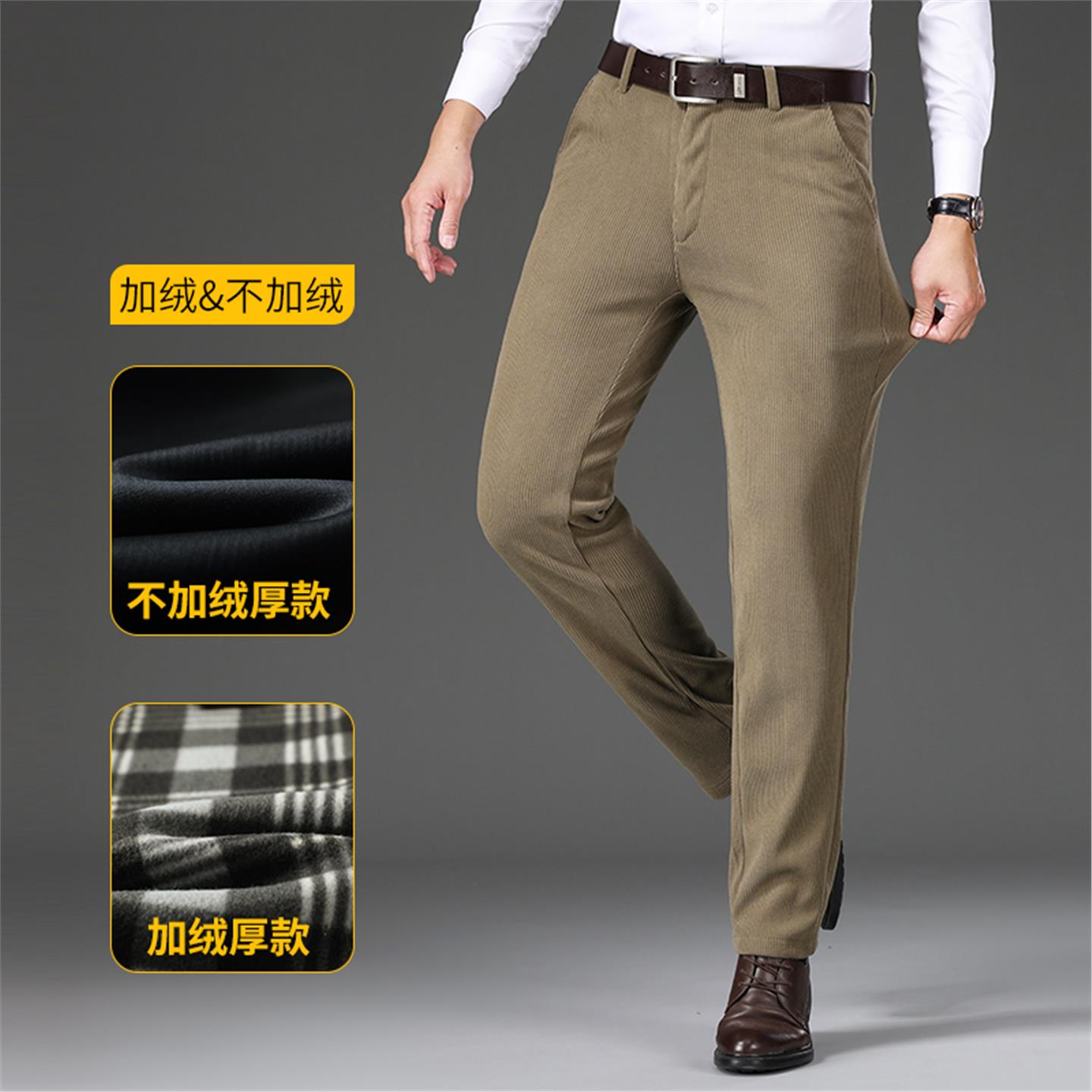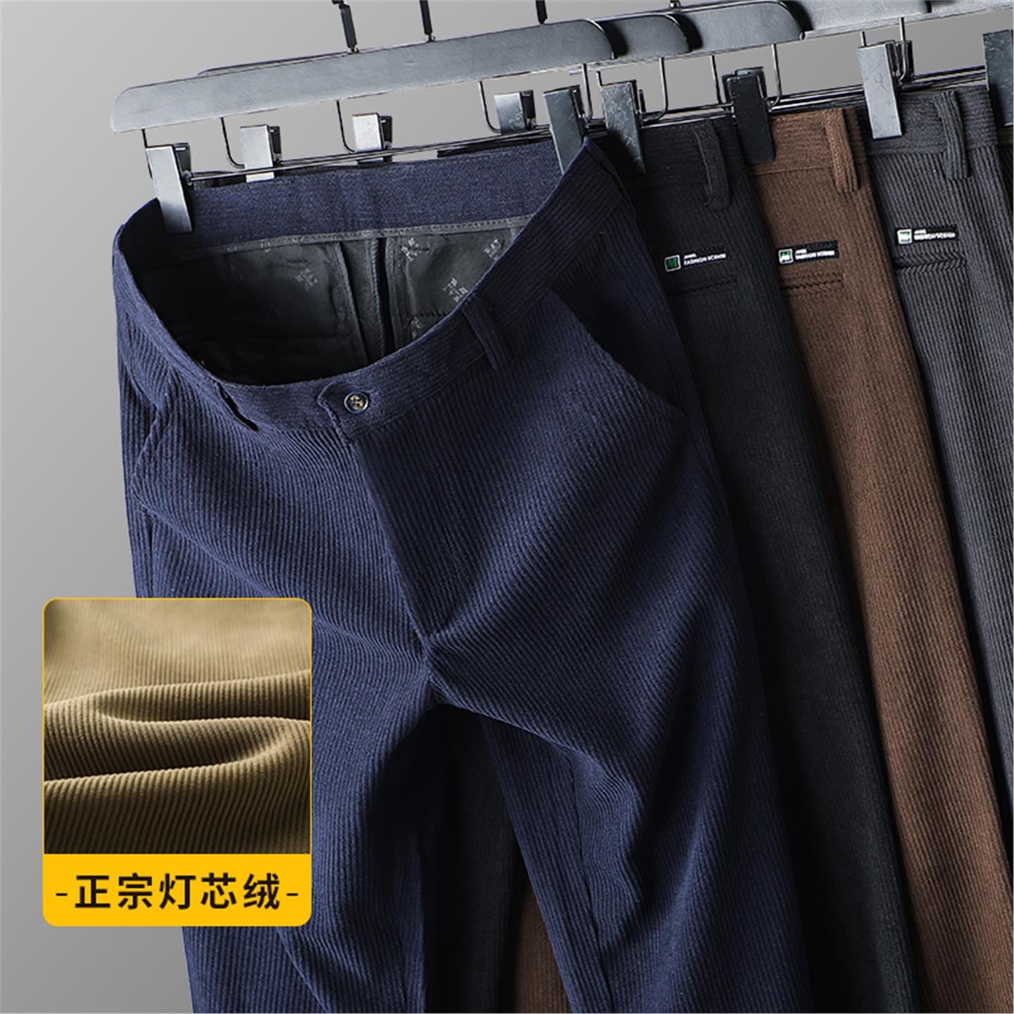 俞兆林灯芯绒裤子男宽松直筒高腰中年休闲裤秋冬季加绒加厚条绒裤 - 俞兆林雅拉琪男装服饰