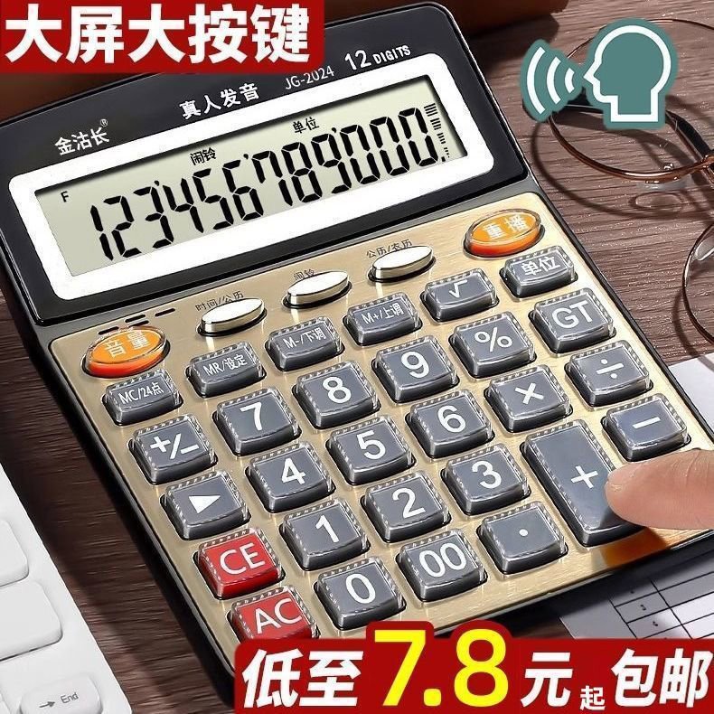 大号语音计算器财务办公12位数透明按键学生真人发音专用计算机
