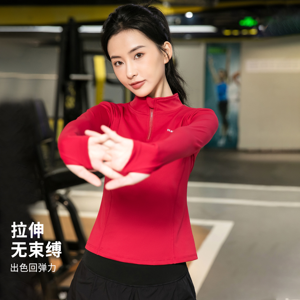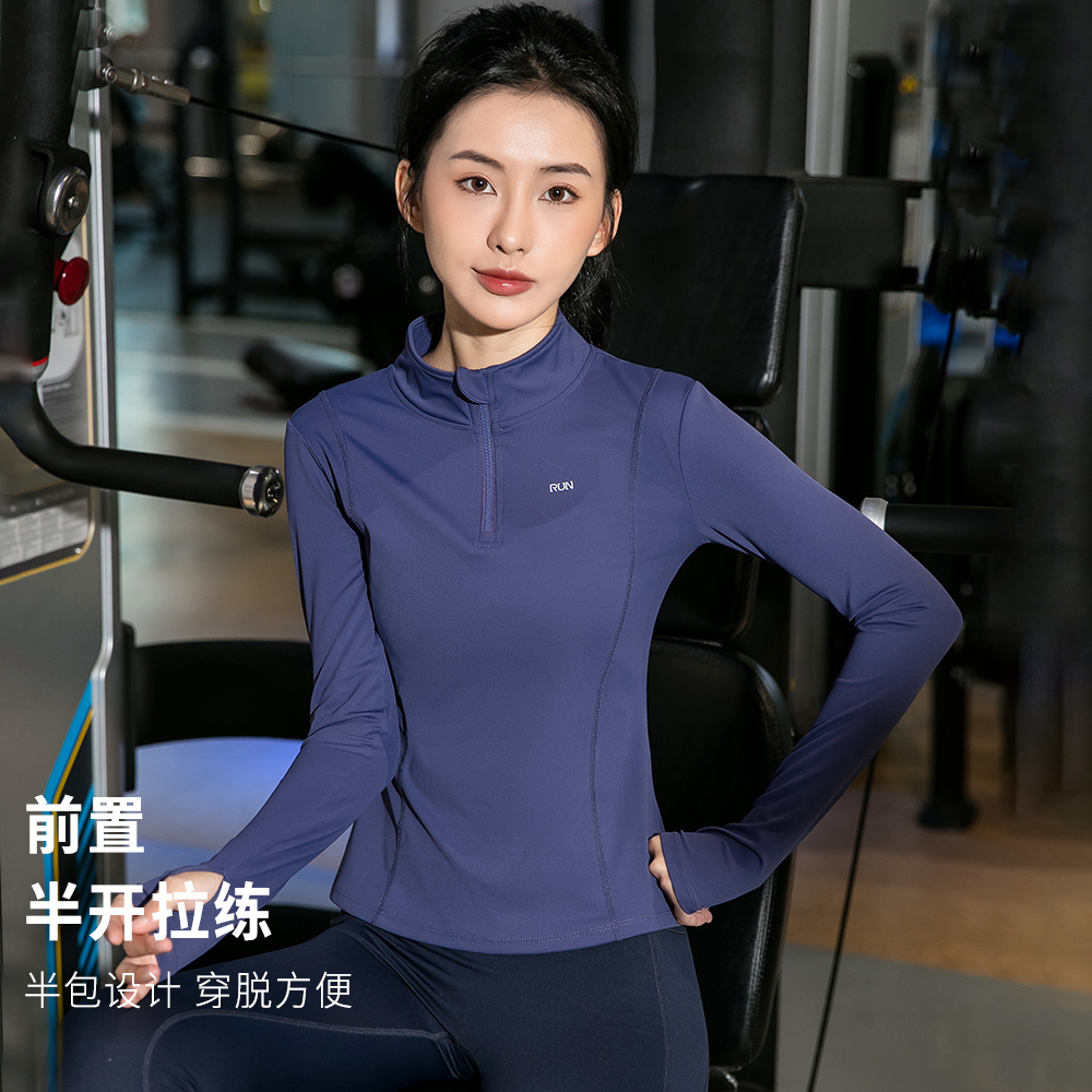 瑜伽服女秋冬新款骑行跑步训练服健身服速干衣半拉运动上衣女跳操 - 哈梵运动旗舰店