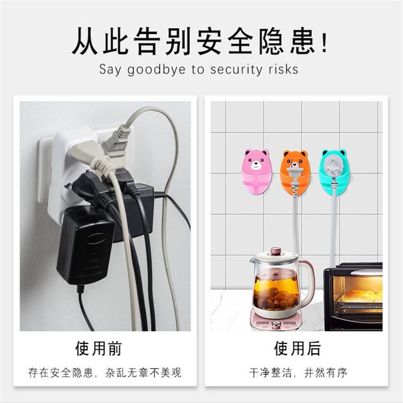 卡通抱抱熊免打孔插头挂钩强力黏胶y理线 线器集线 线器电源插座