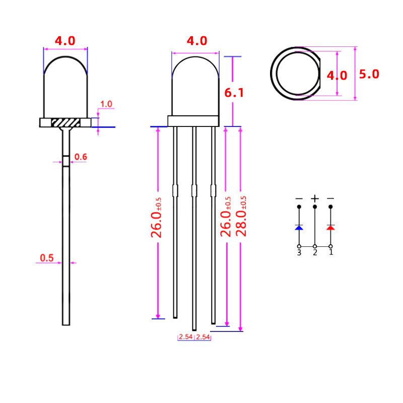 LED灯珠/F4mm圆头双色led发光二极管红翠绿蓝直插式灯珠封装厂家 - 逗却百货店4