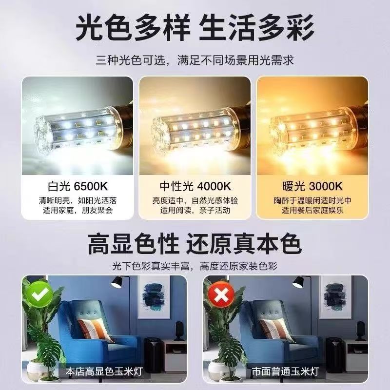 欧普led灯泡e14e27大小螺口家用节能耐用超亮三色变光玉米灯泡 - 品牌LED灯饰