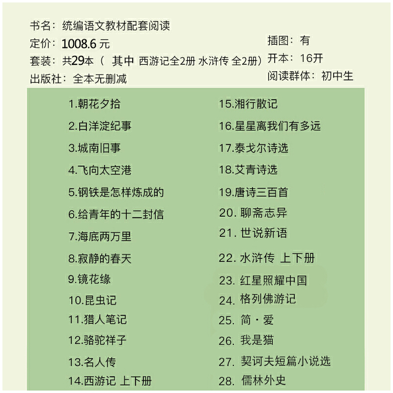 您的位置:他他商城  >   >  正版包邮读物语文教材课外阅读书籍全套30册朝花夕拾西游记骆驼祥子原著初中生必读世界名著名人传人民教育出版社文学读物