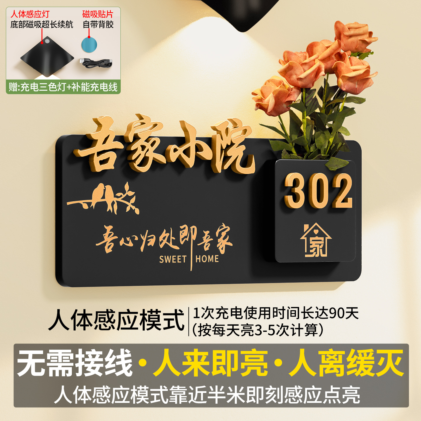 入户门牌号高级感轻奢创意家用号码牌装饰定制新家乔迁入宅家门口奶油风插花住宅家庭亚克力磁吸门号标识挂牌