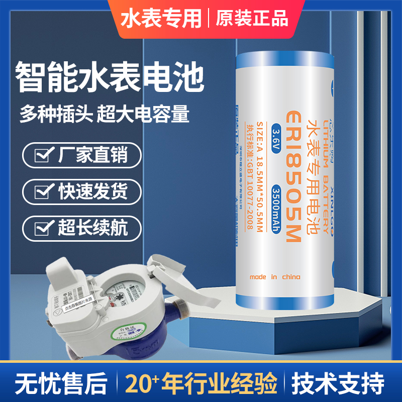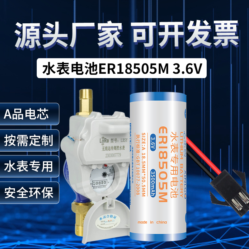 ER18505M/ER14505M/CR17505/CR17450智能水表3.6V/3V专用电池IC卡反向插头