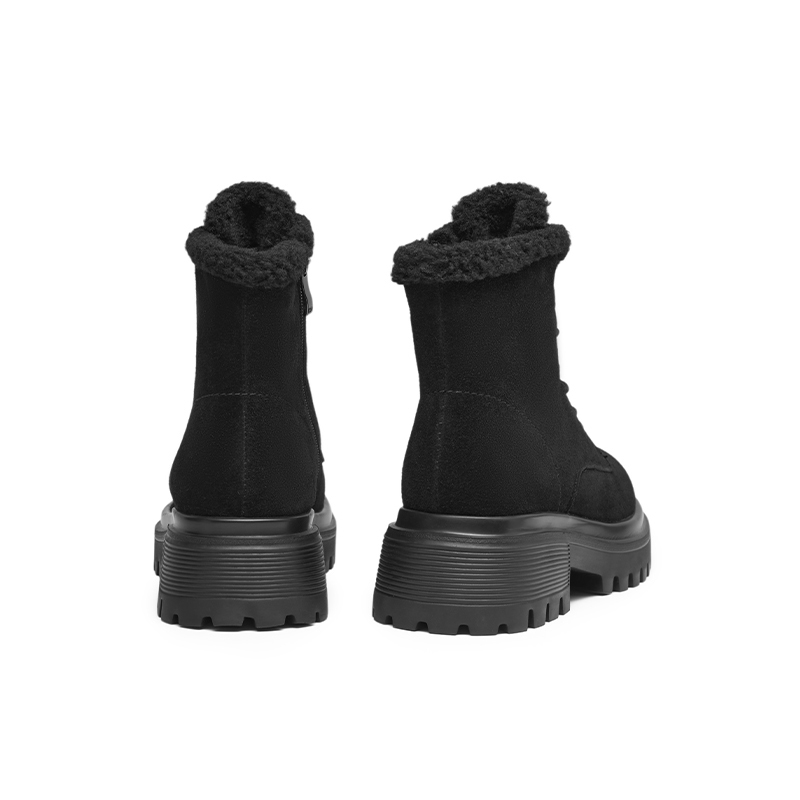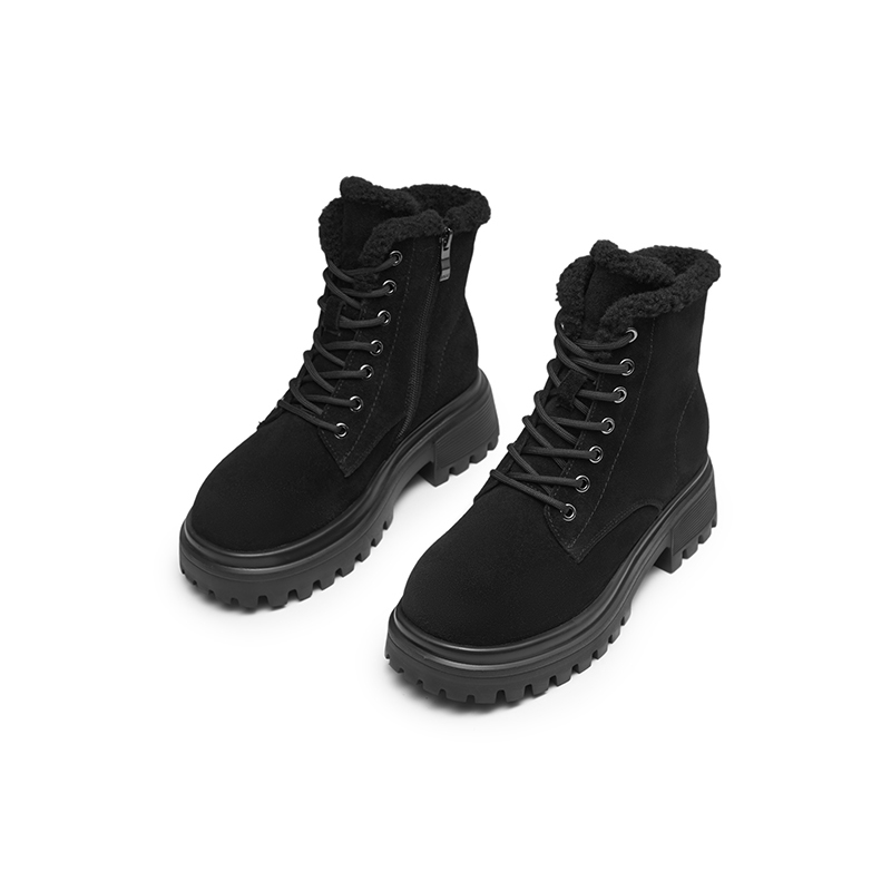 红蜻蜓真皮短靴女冬季新款加绒保暖休闲流行粗跟女士棉鞋断码清仓 - 老林名鞋汇
