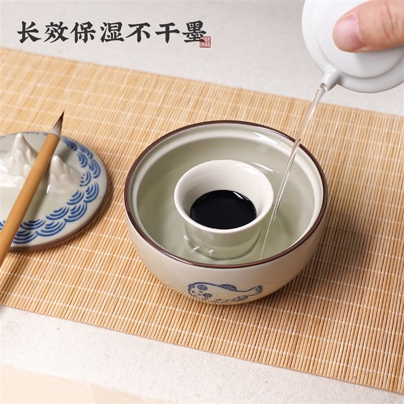 您的位置:他他商城  >   >  带盖火锅砚台陶瓷保湿墨碟不干墨毛笔书法专墨汁墨盒墨海文房四宝