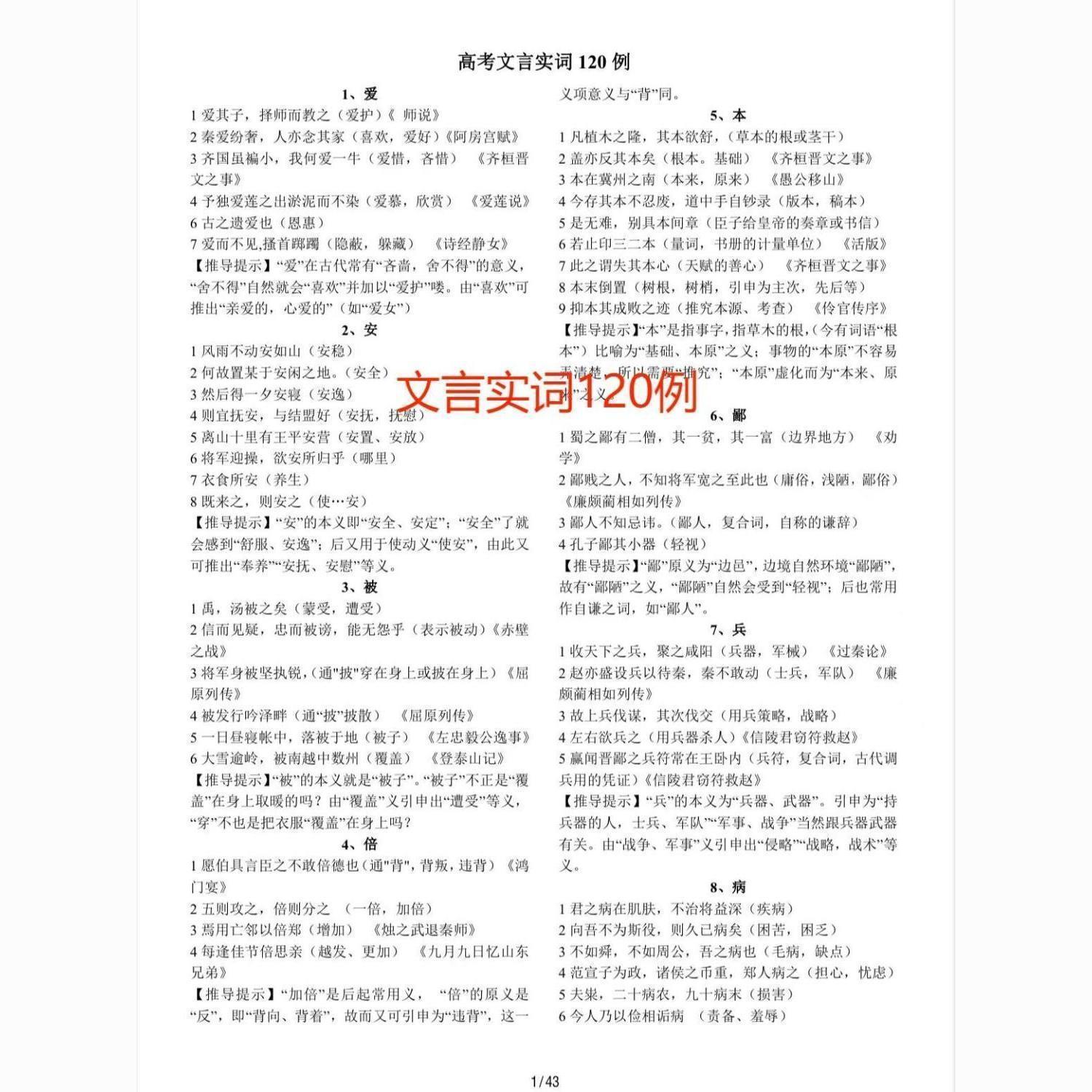 高中语文800个成语解释120文言实词及18个文言虚词高考复习资料 - 征程资料大全1