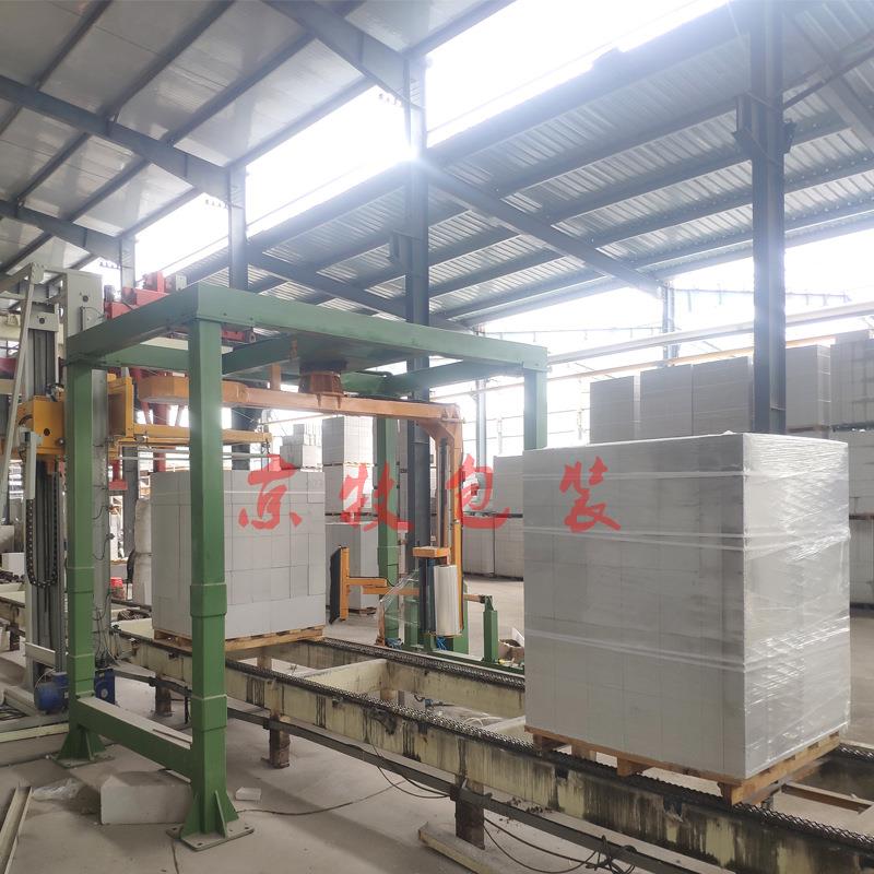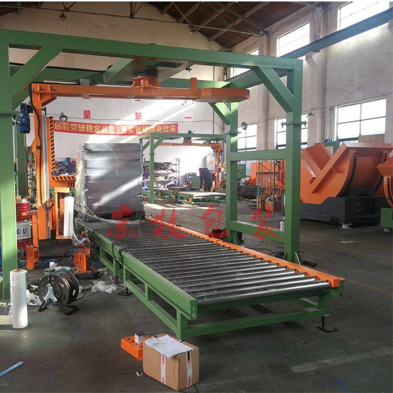 在线摇臂覆膜机在线悬臂式缠绕打包机湛江乐昌木托箱袋缠绕包装机