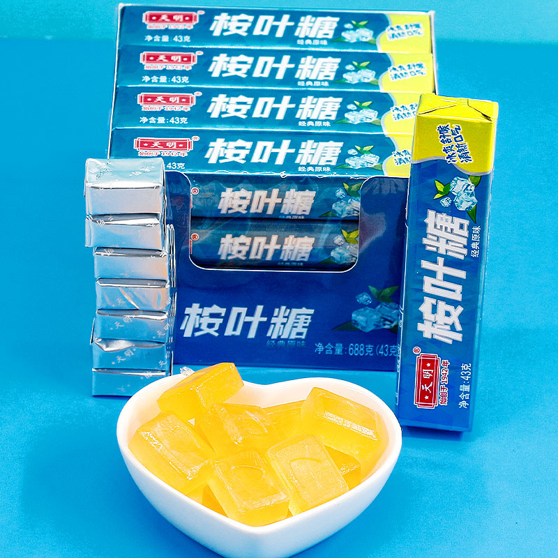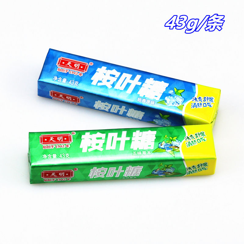 上海天明桉叶糖43g老式经典原味薄荷糖清凉嗓子五味草本润喉糖果 - 三禾糖果屋