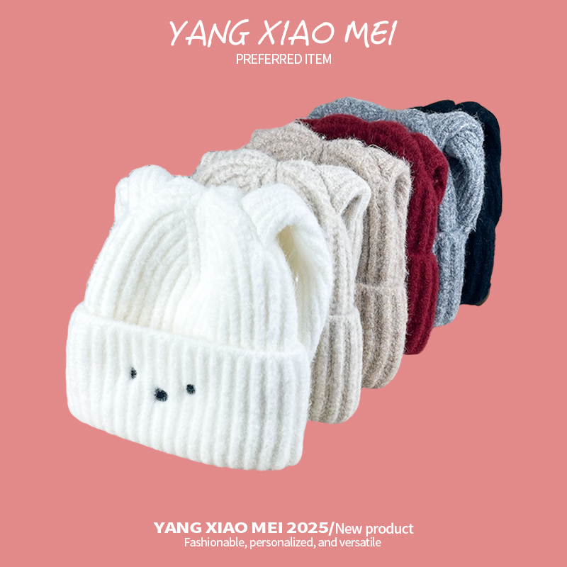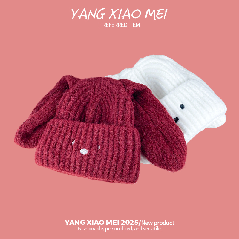 秋冬季新款可爱小兔子针织帽子女长耳朵保暖毛线帽显脸小包头冷帽 - 羊小美