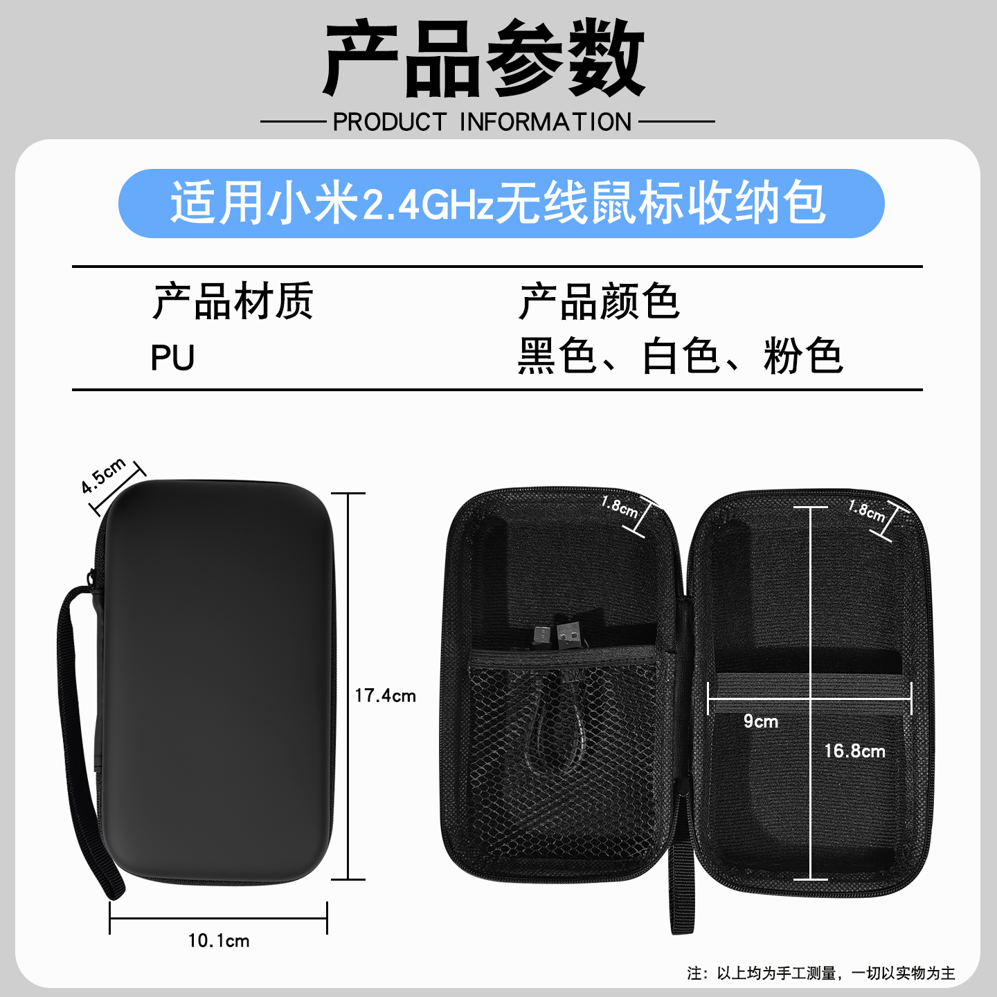 适用小米无线鼠标2.4GHz舒适版收纳包抗磨耐压自带手提绳轻巧便捷内置网兜短绒弹力带pu材质耐脏防水防泼溅 - 寻觅者数码专营店