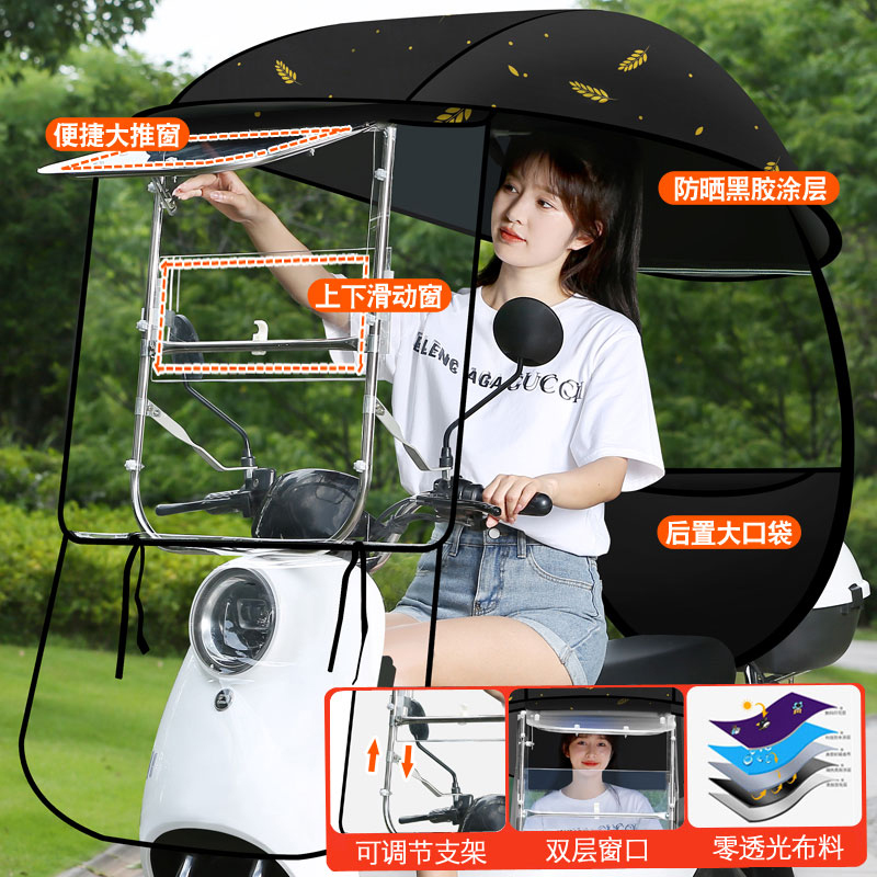 电动摩托车挡雨棚蓬电瓶车防晒防雨挡风罩新款加厚遮阳伞安全雨伞 - 魅力电动车雨棚