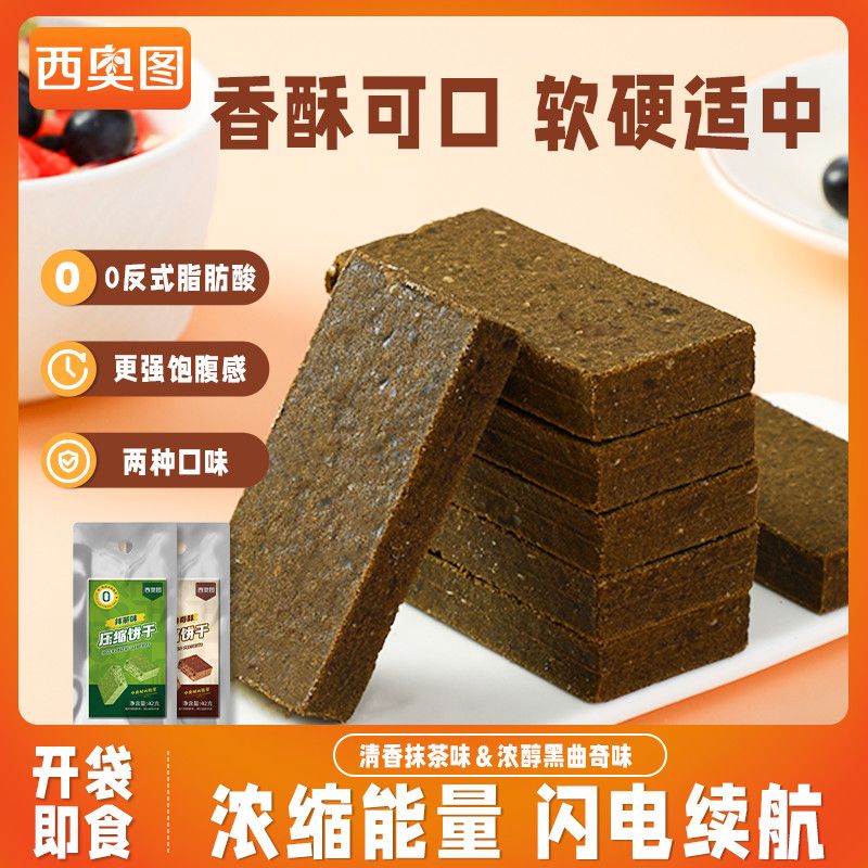 西奥图压缩饼干抹茶黑曲奇混合口味10包休闲零食代餐饱腹独立包装