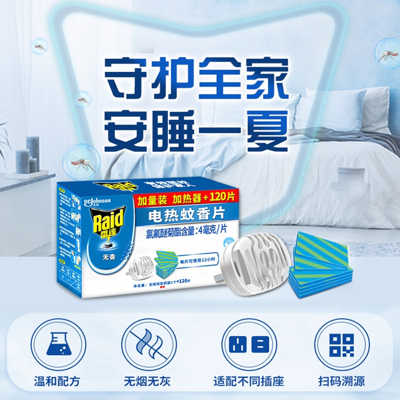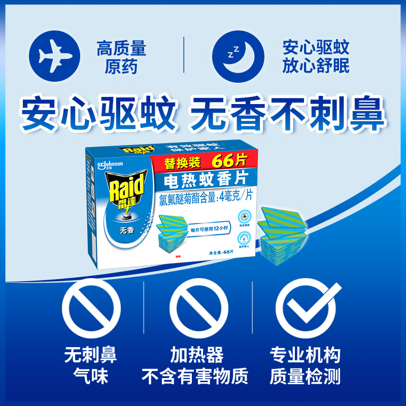 雷达电热蚊香片驱蚊片插电加热器120片家用灭蚊驱蚊无香上海庄臣 - 苔花家居专营店