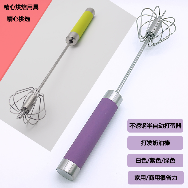 12寸半自动手持下压式旋转打蛋器不锈钢搅拌棒打发奶油棒家用包邮 - 智良优品