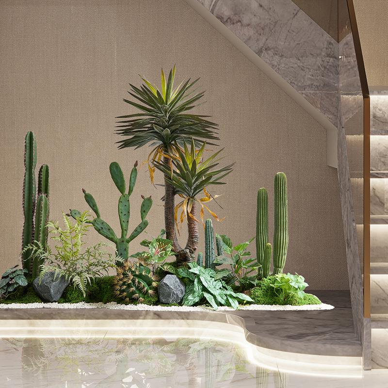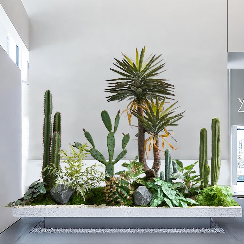 彷真绿色植物室内景观植物楼梯下造景彷生仙人掌摆件转角盆栽橱窗