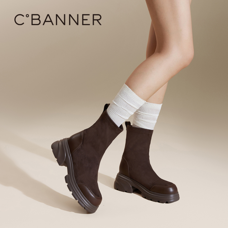 【胡冰卿同款】千百度厚底弹力靴袜靴24冬季气质增高时装靴瘦瘦靴 - 千百度官方旗舰店
