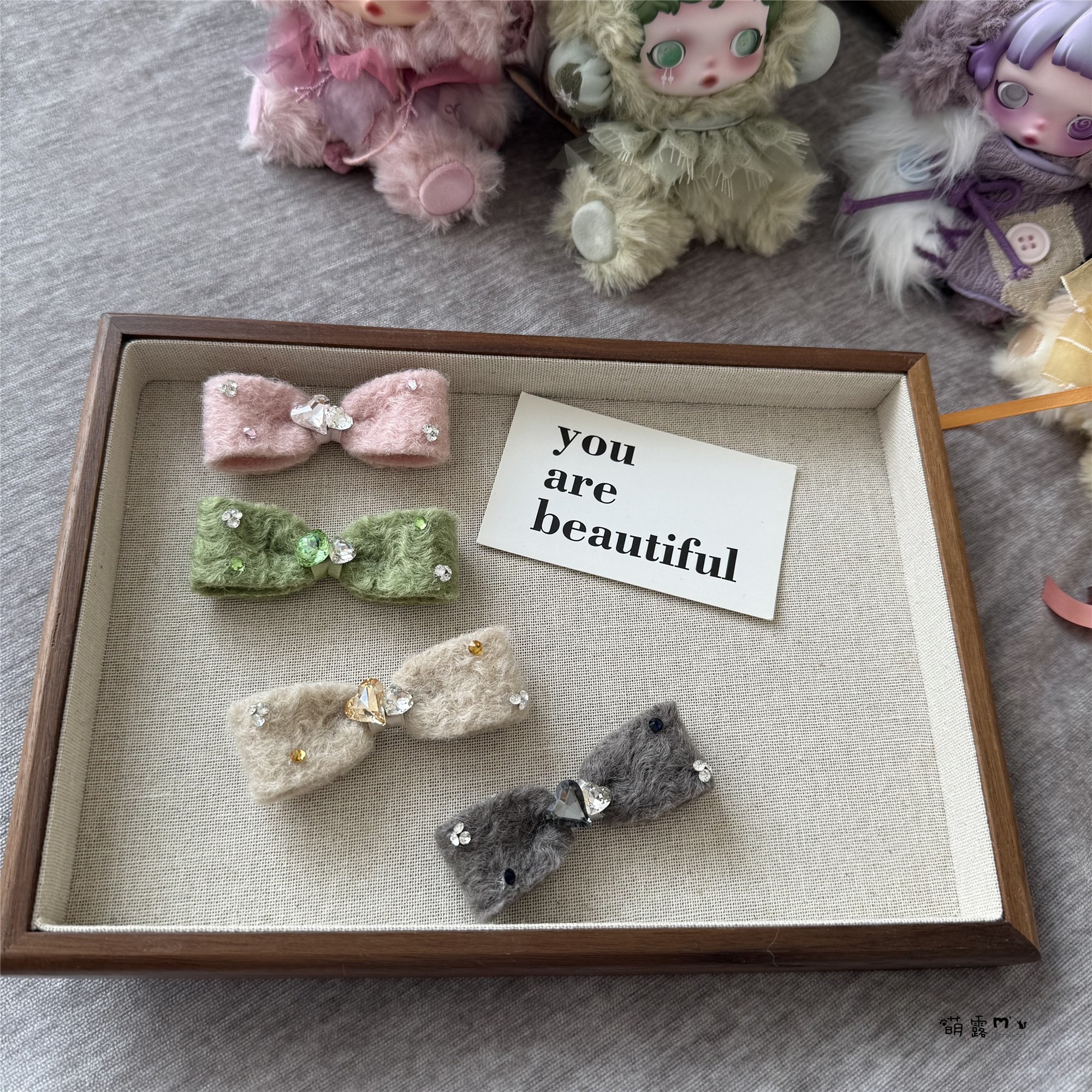 宠物发夹秋冬新款毛呢蝴蝶结发夹约克夏马尔济斯西施狗狗夹子发饰 - 萌露宠物用品