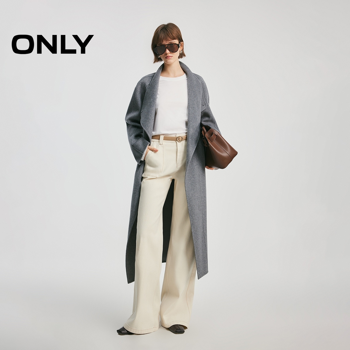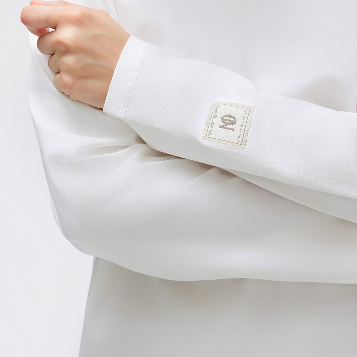 ONLY2025秋冬新款简约刺绣贴布基础落肩长袖纯白宽松打底T恤女 - ONLY官方奥莱旗舰店