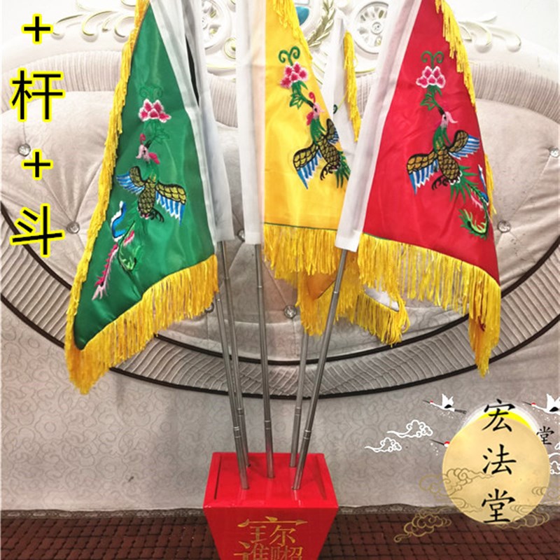道家令旗 五凤旗 五色旗 伸缩杆 红色旗斗旗底座 五色凤凰旗 - 梦桦企业店