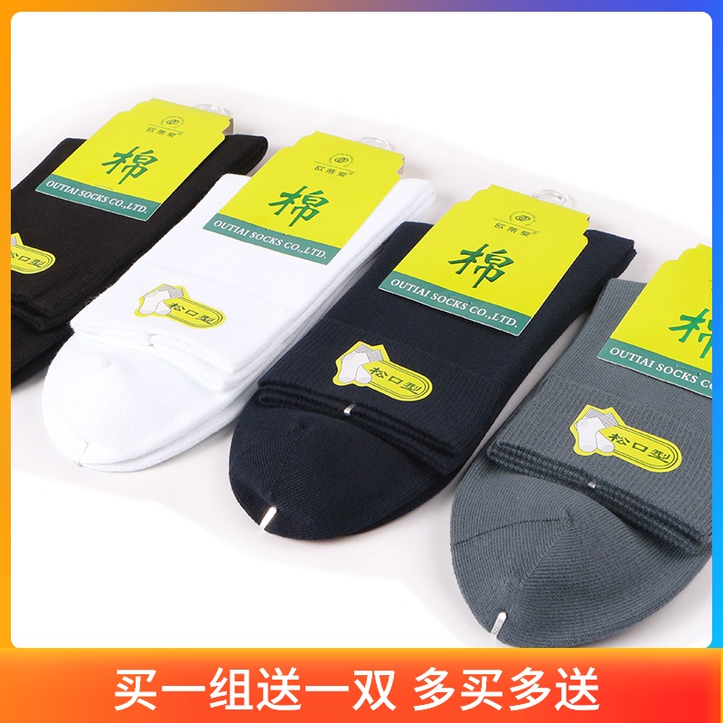 欧蒂爱松口袜子男士中老年秋冬季厚款纯棉防臭吸汗全棉爸爸中筒袜
