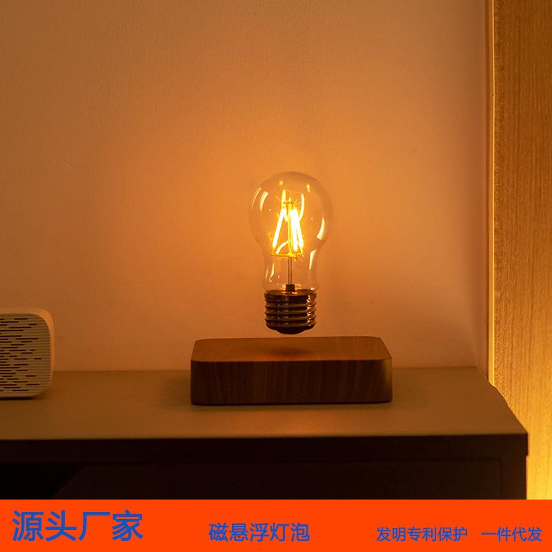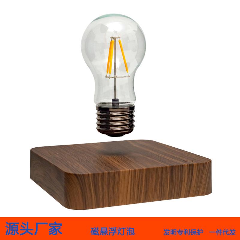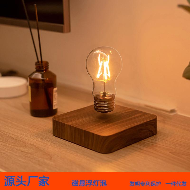 原木风底座创意家居摆件磁悬浮灯泡 自动旋转无线充电夜灯灯泡 - 峻慈商贸城