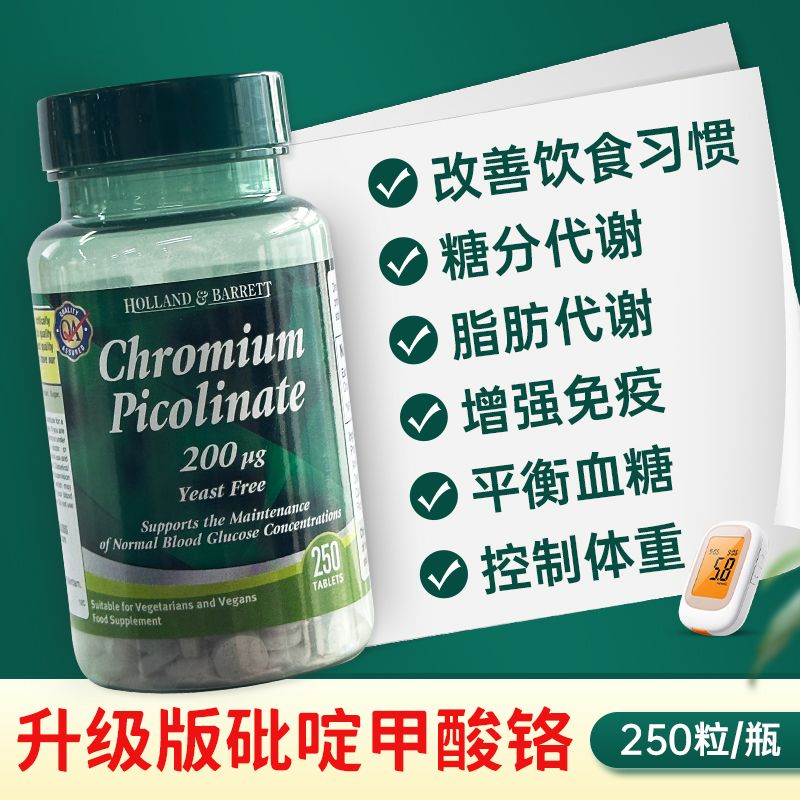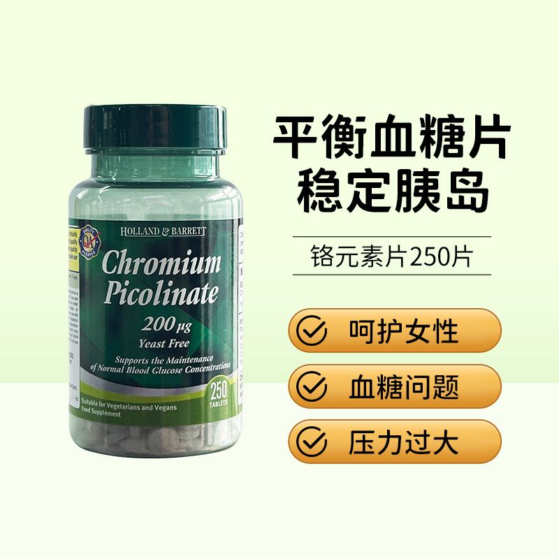 英国HB荷柏瑞铬元素200ug辅助血/糖平衡片吡啶甲酸铬营养片250粒