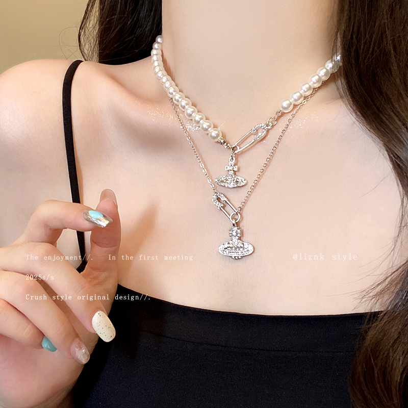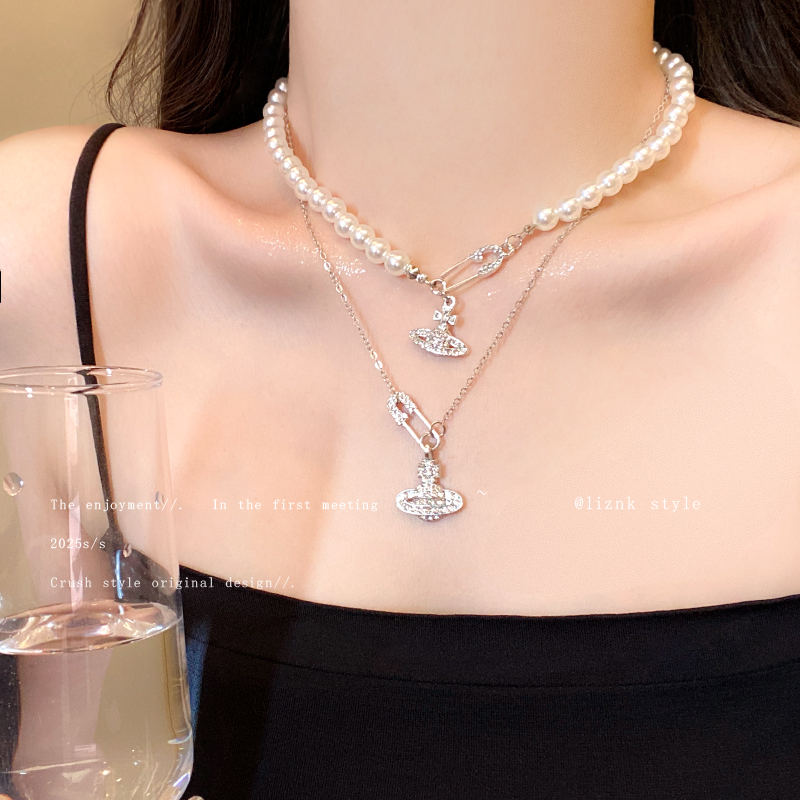 土星别针项链银色锁骨西太后闪钻甜酷小众设计感潮辣妹卫衣毛衣链 - 那片海饰品旗舰店