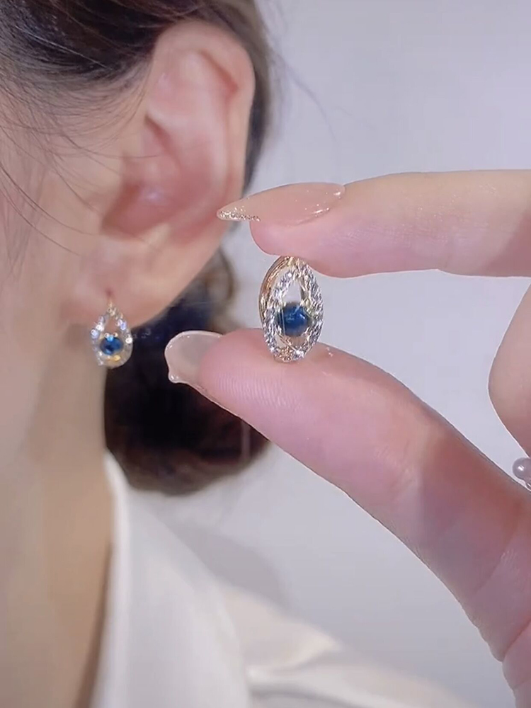 2024年新款蓝水晶天使之眼耳扣耳环微镶满钻轻奢小众时尚百搭耳饰 - 芸溪韩饰
