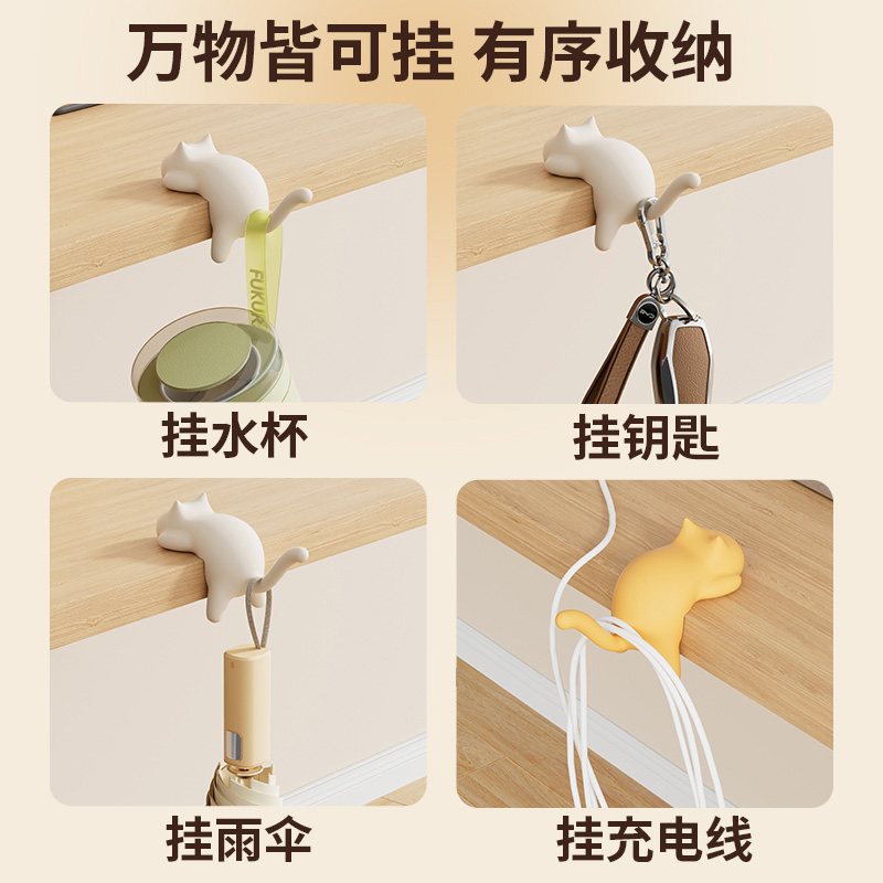 猫咪学生桌边书包挂钩强力承重无痕免打孔办公室桌面宿舍挂包神器 - 杜卡迪旗舰店