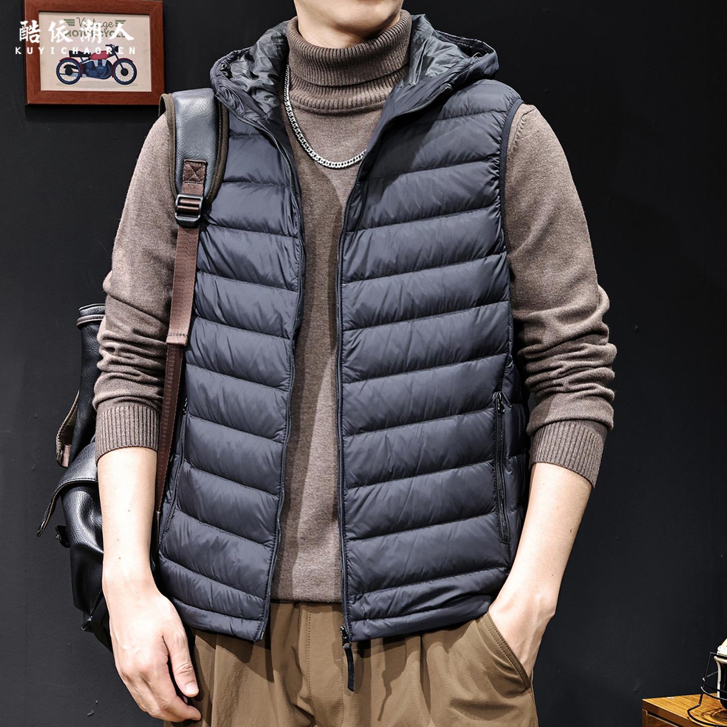 百搭时尚2025冬季新款羽绒马甲男潮牌轻薄保暖连帽外套防寒冲锋衣 - 楠山精品潮男