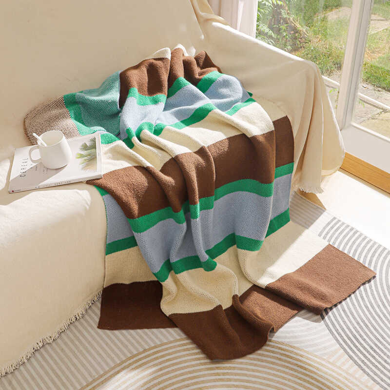 美拉德毛毯北欧办公室条纹盖毯民宿床尾毯针织搭毯棕咖沙发毯简约 - MIMI HOME (针织毯批发纯一手)