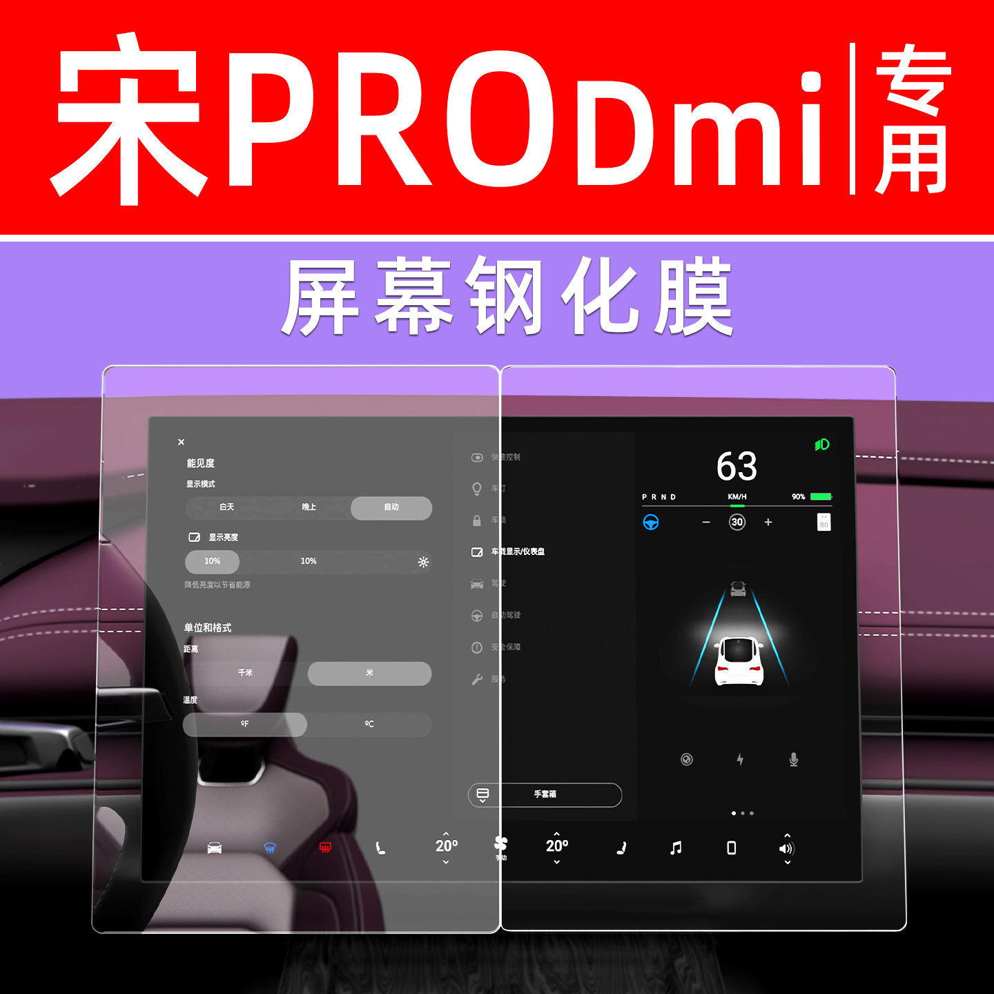 比亚迪宋PRODmi屏幕钢化膜中控导航贴膜汽车用品车机显示屏保护膜 - 威卡酷车品旗舰店