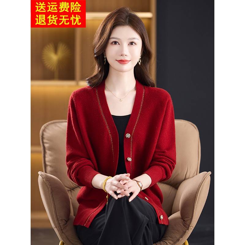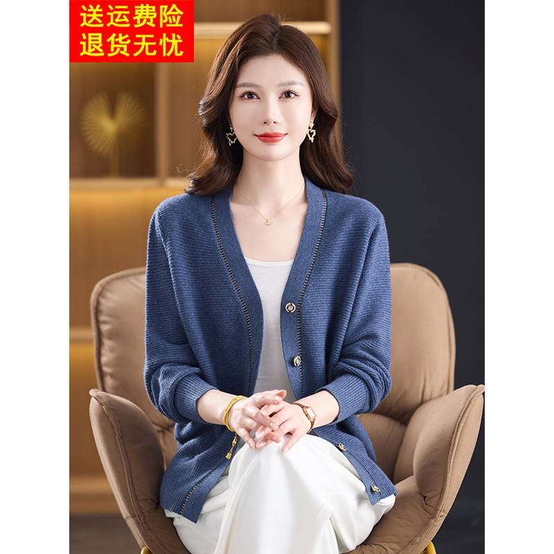 羊绒针织开衫V领秋冬季中老年妈妈装时尚洋气百搭毛衣女外套上衣 - 2025女装精品店