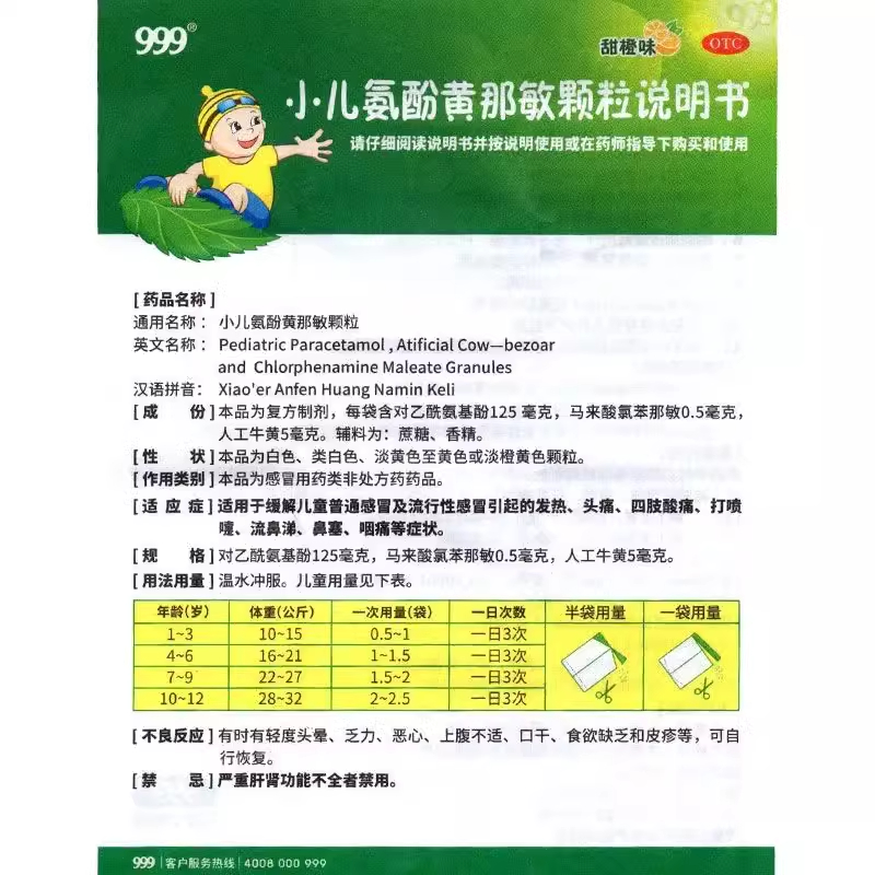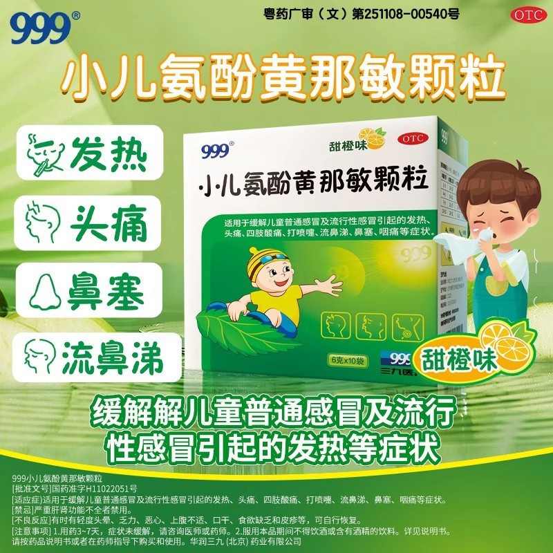 999小儿氨酚黄那敏颗粒6g*10袋/盒儿童感冒引起发热头痛鼻塞咽痛 - 弘毅药品专营店