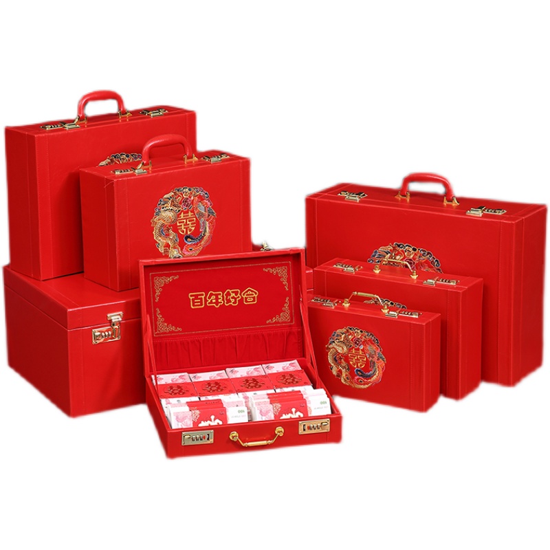礼金箱彩礼箱彩礼钱盒子礼盒中国风嫁妆箱钱箱子新娘红皮箱陪嫁箱 - 邦欣喜铺