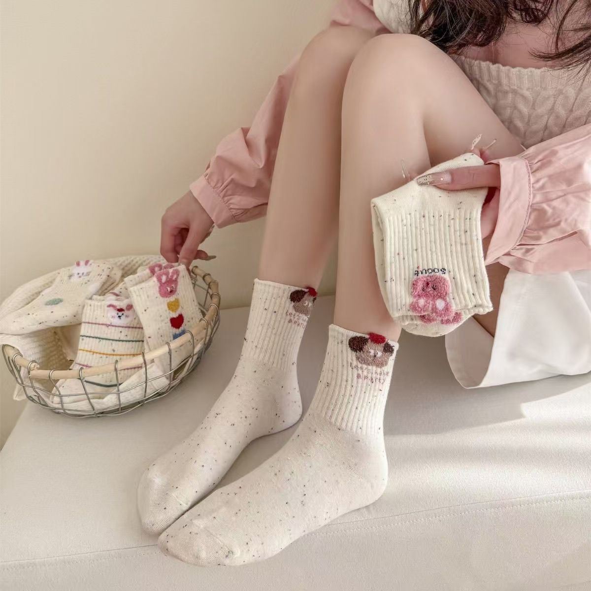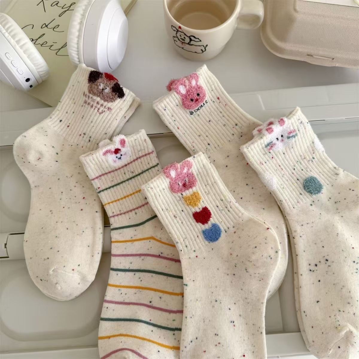 袜子女中筒秋冬韩版点子纱卡通ins潮百搭长袜可爱小兔学院风女袜 - 艾馨袜业