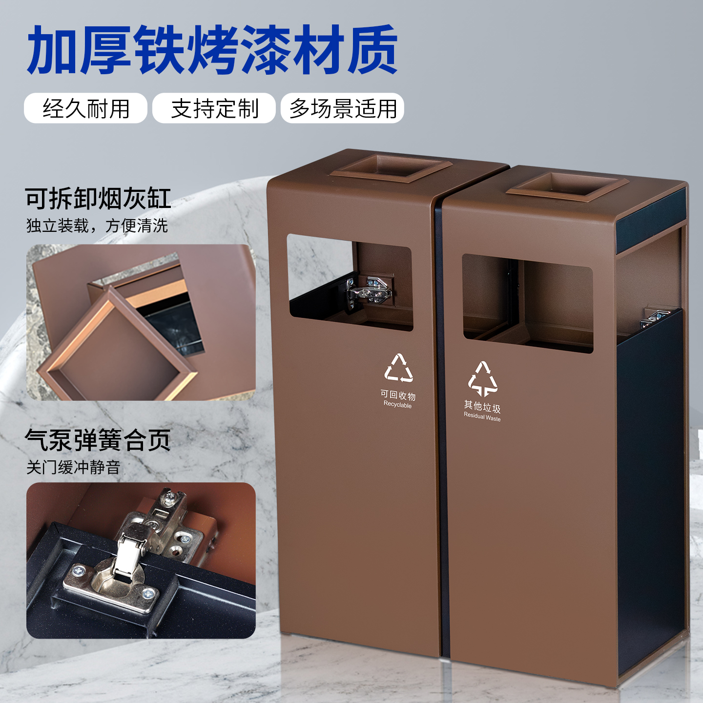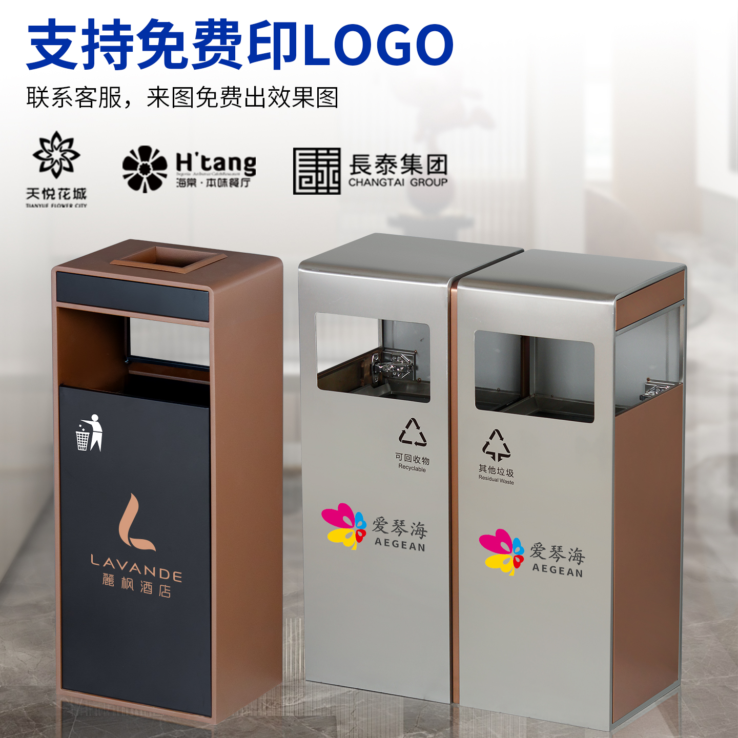户外不锈钢垃圾桶商用分类酒店大堂立式吸烟区庭院室外果皮箱定制 - 创联酒店用品