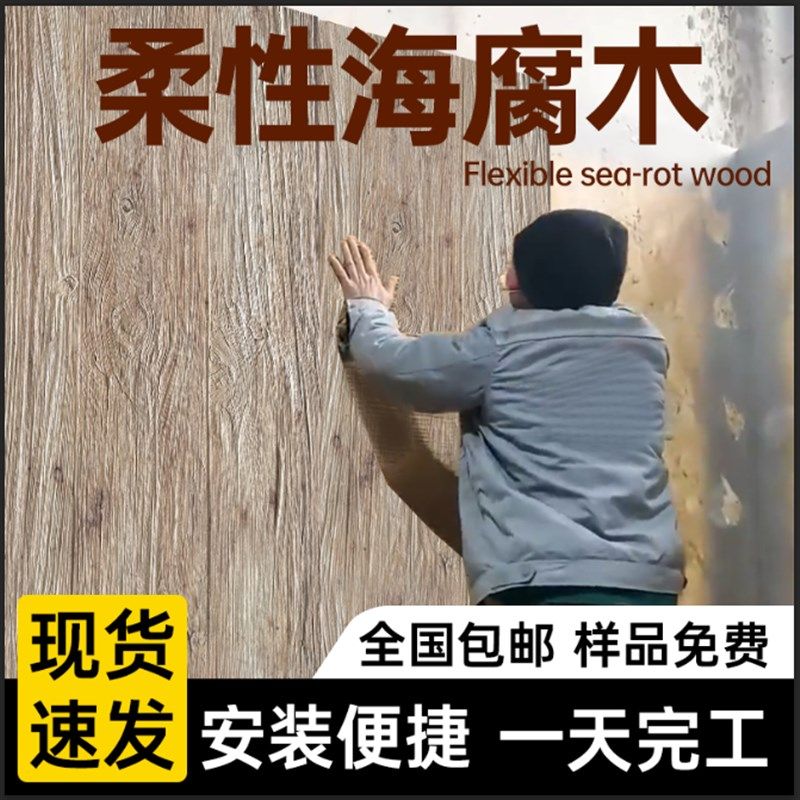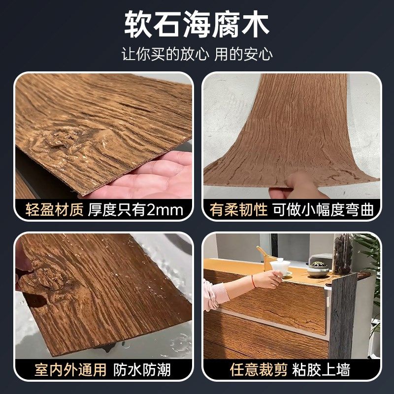 软瓷海腐木软石保利木榉木木纹超薄柔性石材饰面板软石板材年轮木 - 天河玩具店