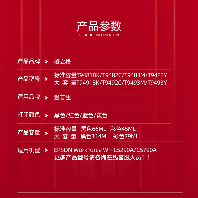 适用EPSON爱普生T9481墨盒墨袋T9491 workforce wf-5790a 打印机 - 威众工厂